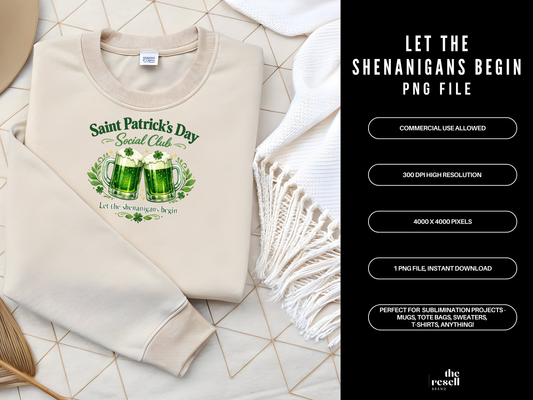 Let the Shenanigans Begin 300 dpi PNG | St Patrick’s Day Shirt | Irish Beer Design | Retro Vintage Sublimation Clipart
