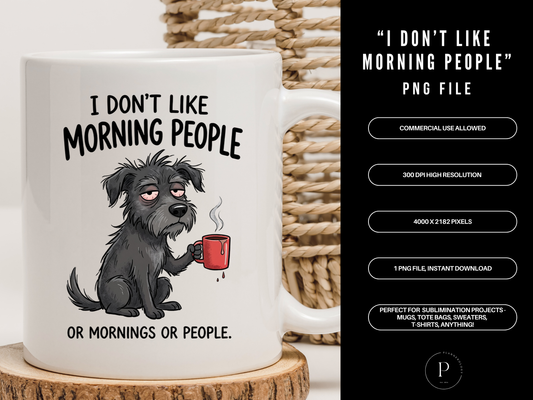 I Don’t Like Morning People PNG Funny Dog Coffee Design | Sarcastic Quote Shirt Graphic | Anti Morning Sublimation File | POD Commercial Use