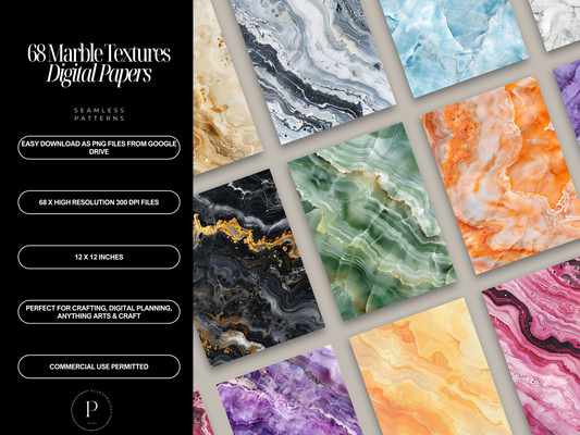 68 Marble Digital Papers Bundle – Seamless Marble Textures 12x12 PNG, Luxury Backgrounds, Commercial Use PLR MRR