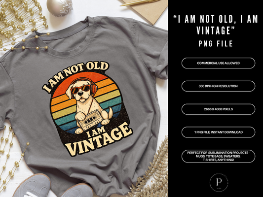 I Am Not Old I Am Vintage PNG Clipart – Funny Retro Dog Design for Shirts, Sublimation Graphic Download, POD Commercial Use