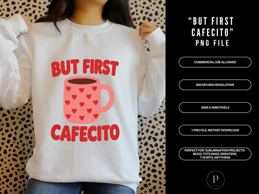 But First Cafecito PNG Clipart – Cute Coffee Mug Design for T-Shirts, Sublimation & Print on Demand, POD Commercial Use