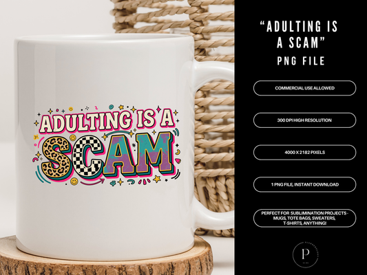 Adulting Is A Scam PNG Clipart | Funny Retro Quote Design | Y2K Aesthetic Graphic for Shirts & Sublimation Sublimation PNG | POD Commercial Use