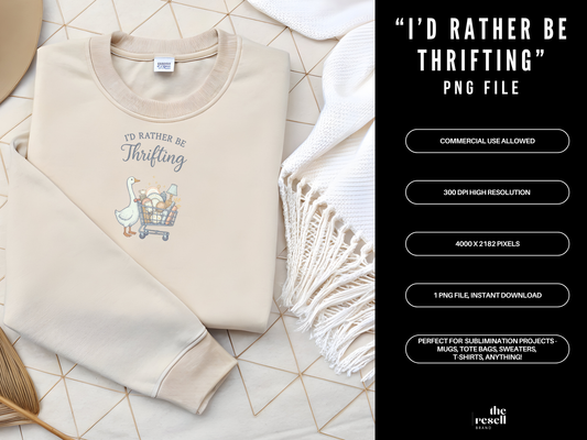 I'd Rather Be Thrifting PNG | Vintage Cottagecore Design | Thrift Lover Graphic for Shirts & Tote Bags | POD Commercial Use