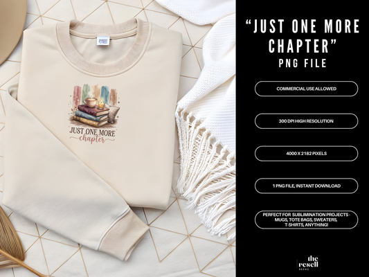 Just One More Chapter PNG Clipart | Cozy Book Lover Design | Reading Aesthetic Clipart for Shirts, Totes & Gifts | POD Commercial Use