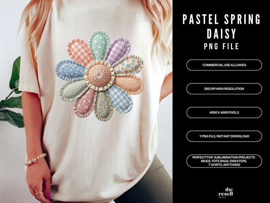Spring Faux Patchwork Daisy PNG | Cottagecore Floral Clipart | Vintage Fabric Style Flower Design for Sublimation & Apparel | POD Commercial Use