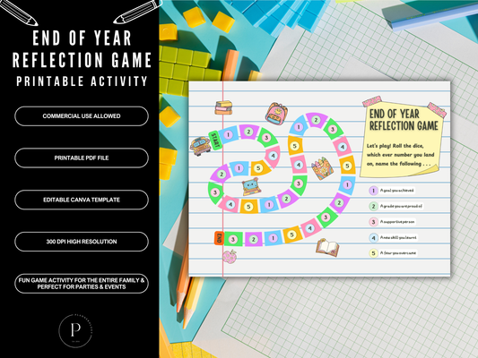 End of Year Reflection Game Kit (Editable Canva + Printable PDF) – PLR & MRR Resell Rights Included