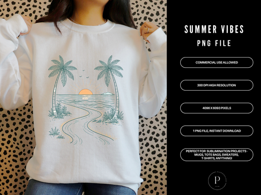 Vintage Summer Vibes PNG Clipart – Retro Beach Sunset Palm Tree Design for T-Shirts, Sublimation & Print on Demand, POD Commercial Use