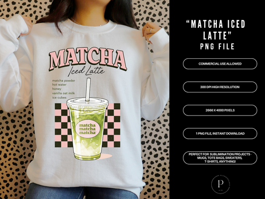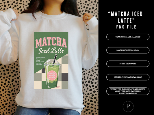 Iced Matcha Latte PNG Clipart – Trendy Matcha Aesthetic Drink Design for T-Shirts, Sublimation & Print on Demand, POD Commercial Use