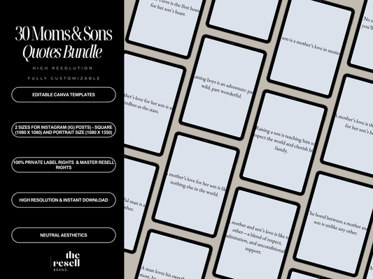 30 Canva Mom & Son Quote Templates for Instagram | Carousels & Posts Square + Portrait Sizes | Editable PLR Content | MRR Included | PNG Download
