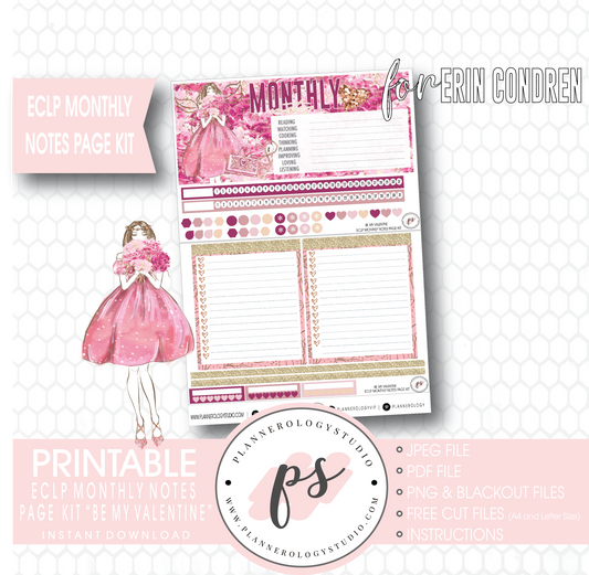 Be My Valentine Monthly Notes Page Kit Digital Printable Planner Stickers (for use with Standard A5 Wide Planners)