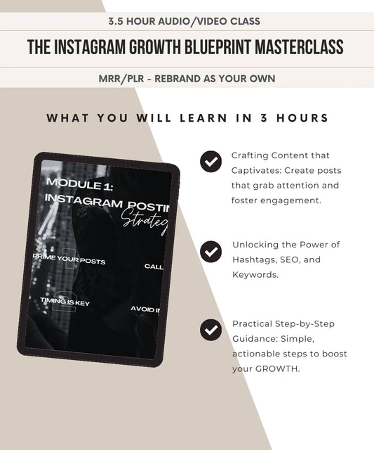 The Instagram Growth Masterclass 3 Hour Video Course | 25 Modules, 99 Videos | Viral IG 101 Blueprint Mini Course | Digital Marketing Course with PLR & MRR