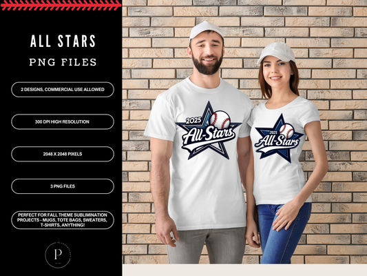 2025 All Stars PNG Set | Sports Sublimation Designs | 2 Variations | Commercial Use | Shirts, Caps, Mugs, Sweaters, Totes