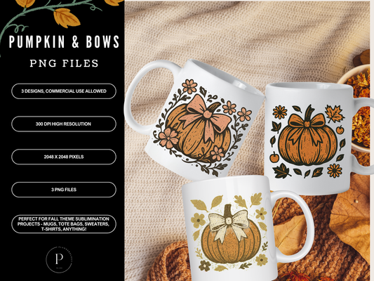 Vintage Retro Coquette Pumpkins & Bows PNG Set | 3 Fall Sublimation Designs | Commercial Use | Shirts, Mugs, Sweaters, Totes