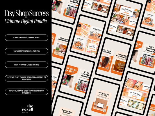 Etsy Digital Shop Starter Bundle | 10 PLR & MRR Digital Products – Banners, Mockups, eBooks, Templates | Canva Editable