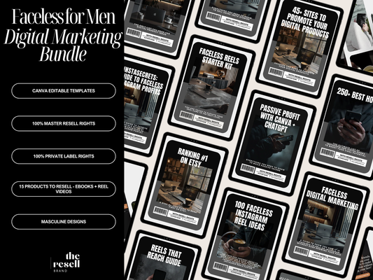 Faceless Men Digital Marketing Bundle | 15 PLR + MRR Products | Faceless Reels, Videos, eBooks, Ideas | Editable Canva Templates
