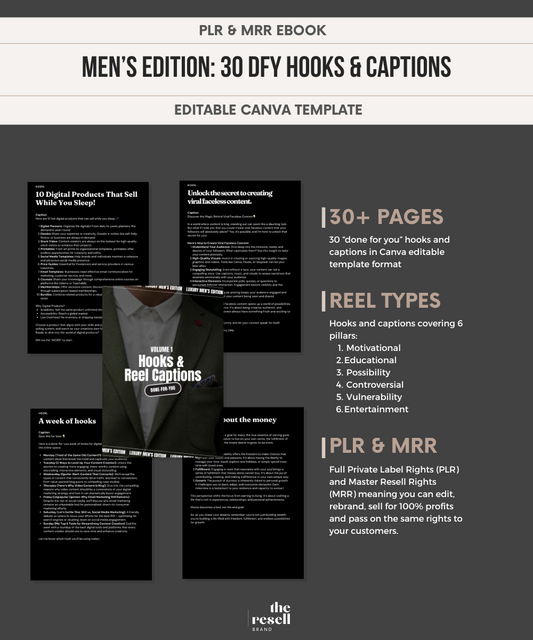 Men's Edition Vol 1: 30 DFY Reels Hooks & Captions | Instagram Digital Marketing | MRR & PLR| Canva Editable