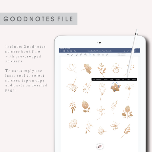 Rose Gold Floral Elements GoodNotes Pre-cropped Digital Sticker Book for iPad/Tablet (Freebie)