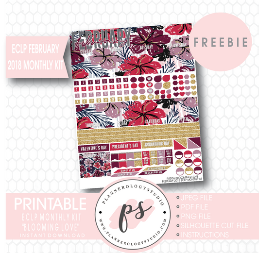 Blooming Love ECLP Erin Condren February 2018 Monthly Kit Digital Printable Planner Stickers (PDF/JPG/PNG/Silhouette Cut File Freebie)