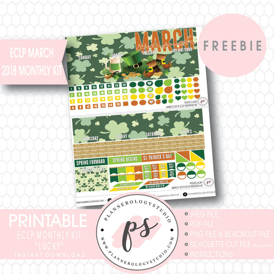 Lucky St Patrick's Day ECLP Erin Condren March 2018 Monthly Kit Digital Printable Planner Stickers (PDF/JPG/PNG/Silhouette Cut File Freebie)
