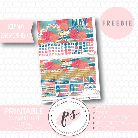 Festival ECLP Erin Condren May 2018 Monthly Kit Digital Printable Planner Stickers (PDF/JPG/PNG/Silhouette Cut File Freebie)