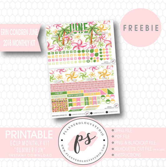 Summer Fun ECLP Erin Condren June 2018 Monthly Kit Digital Printable Planner Stickers (PDF/JPG/PNG/Silhouette Cut File Freebie)