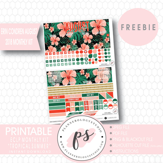 Tropical Summer ECLP Erin Condren August 2018 Monthly Kit Digital Printable Planner Stickers (PDF/JPG/PNG/Silhouette Cut File Freebie)