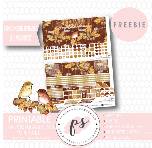 Oh Fall ECLP Erin Condren September 2018 Monthly Kit Digital Printable Planner Stickers (PDF/JPG/PNG/Silhouette Cut File Freebie)