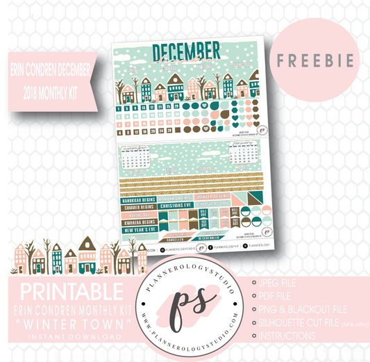 Winter Town ECLP Erin Condren December 2018 Monthly Kit Digital Printable Planner Stickers (PDF/JPG/PNG/Cut File Freebie)