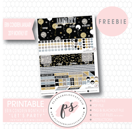 Let's Party ECLP Erin Condren January 2019 Monthly Kit Digital Printable Planner Stickers (PDF/JPG/PNG/Cut File Freebie)