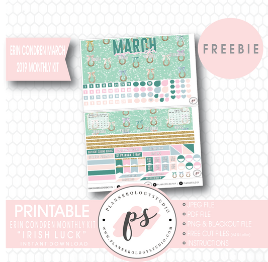 Irish Luck (St. Patrick's Day) ECLP Erin Condren March 2019 Monthly Kit Digital Printable Planner Stickers (PDF/JPG/PNG/Cut File Freebie)