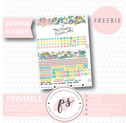 Easter Fun Classic Happy Planner April 2019 Monthly Kit Digital Printable Planner Stickers (PDF/JPG/PNG/Cut File Freebie)