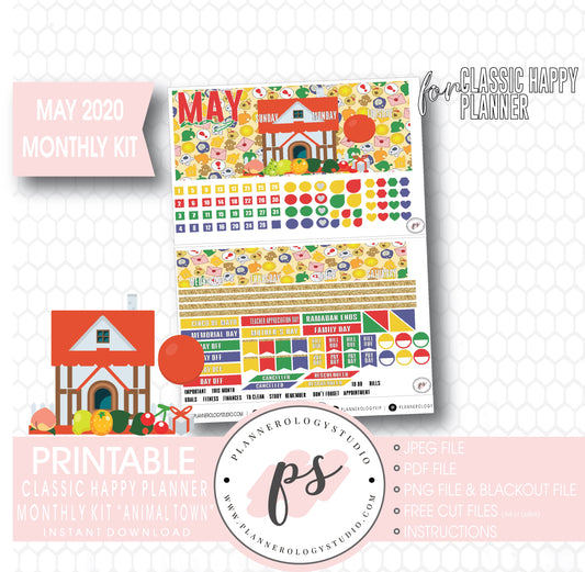 Animal Town (Animal Crossing Inspired) May 2020 Monthly View Kit Digital Printable Planner Stickers (for use with Classic Happy Planner)