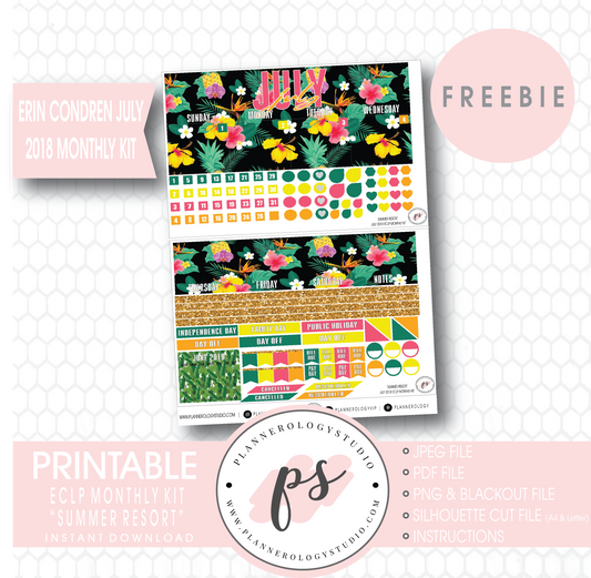 Summer Resort ECLP Erin Condren July 2018 Monthly Kit Digital Printable Planner Stickers (PDF/JPG/PNG/Silhouette Cut File Freebie)