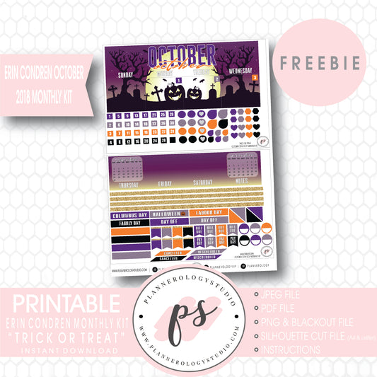 Trick or Treat Halloween ECLP Erin Condren October 2018 Monthly Kit Digital Printable Planner Stickers (PDF/JPG/PNG/Silhouette Cut File Freebie)