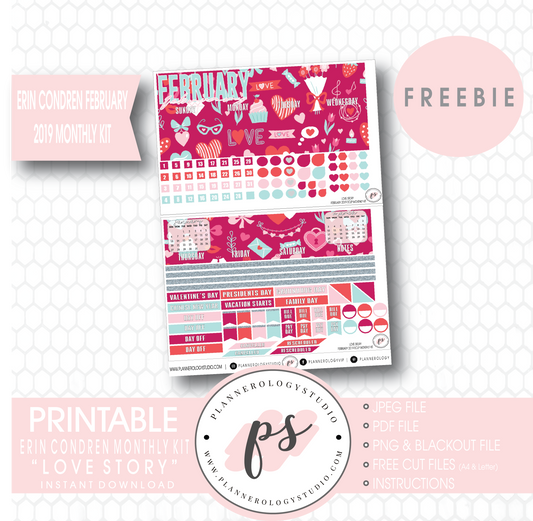 Love Story (Valentine's Day) ECLP Erin Condren February 2019 Monthly Kit Digital Printable Planner Stickers (PDF/JPG/PNG/Cut File Freebie)
