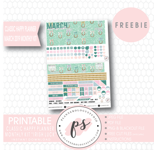 Irish Luck (St. Patrick's Day) Classic Happy Planner March 2019 Monthly Kit Digital Printable Planner Stickers (PDF/JPG/PNG/Cut File Freebie)