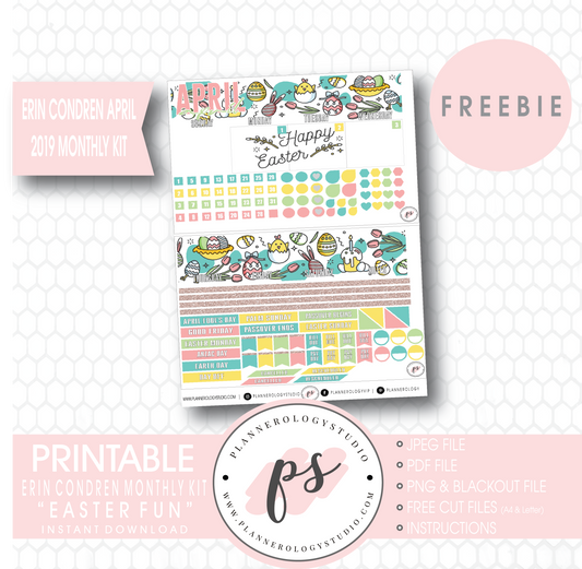 Easter Fun ECLP Erin Condren April 2019 Monthly Kit Digital Printable Planner Stickers (PDF/JPG/PNG/Cut File Freebie)