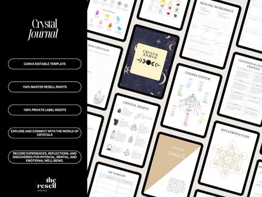 Crystal Journal Canva Template | 34 Pages Canva Editable | Healing Crystal Tracker PLR + MRR | Digital Spiritual Workbook Planner