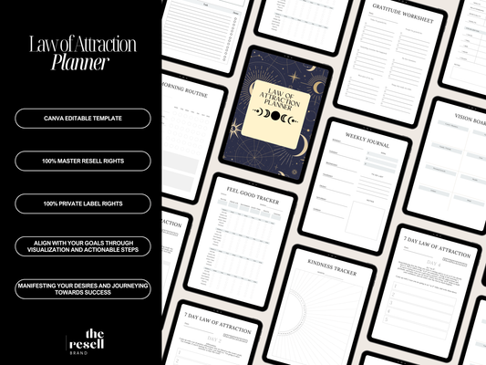 Law of Attraction Planner Canva Template | 40 Pages Editable | Manifestation Workbook PLR + MRR | Digital Spiritual Journal