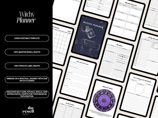 Witchy Planner Canva Template | 42 Pages Editable | Witchcraft & Spiritual Journal PLR + MRR | Digital Witchcraft Workbook