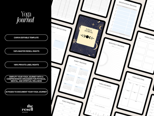 Yoga Journal Canva Template | 20 Pages Editable | Wellness & Mindfulness Planner PLR + MRR | Digital Fitness Journal