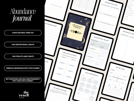 Abundance Journal Canva Template | 42 Pages Editable | Manifestation & Mindset Workbook PLR + MRR | Digital Law of Attraction PDF