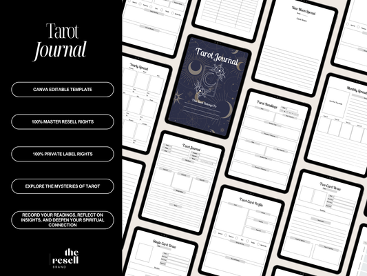 Tarot Journal Canva Template | 46 Pages Editable | Spiritual Card Reading Workbook PLR + MRR | Digital Witchy Printable