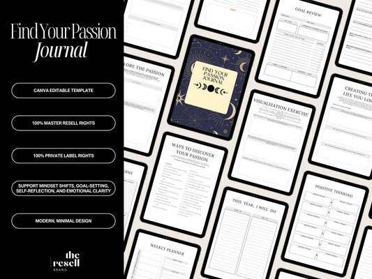Find Your Passion Journal Canva Template | 20 Pages Editable | Self-Discovery Workbook PLR + MRR | Digital Purpose Planner