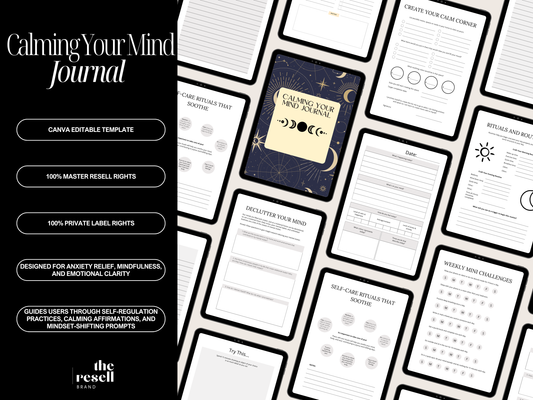Calming Your Mind Journal Canva Template | 20 Pages Editable | Anxiety Relief Workbook PLR + MRR | Digital Mindfulness Journal
