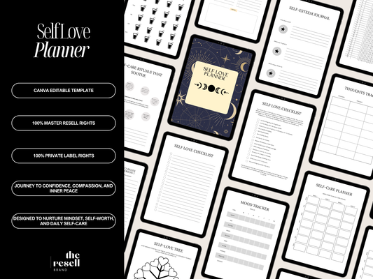 Self Love Planner Canva Template | 25 Pages Editable | Self-Care & Confidence Journal PLR + MRR | Digital Wellness Workbook