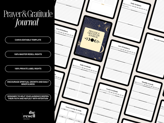 Prayer & Gratitude Journal Canva Template | 10 Pages Editable | Christian Devotional PLR + MRR | Faith-Based Digital Planner