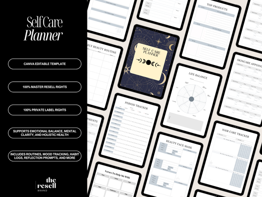 Self Care Planner Canva Template | 51 Pages Editable | Wellness & Mental Health Journal PLR + MRR | Digital Self-Love Workbook