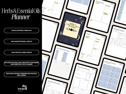 Herbs & Essential Oils Planner Canva Template | 21 Pages Editable | Holistic Wellness Guide PLR + MRR | Digital Herbal Journal