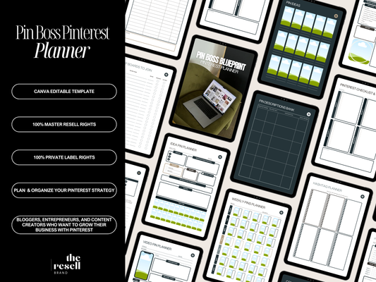 Pin Boss Pinterest Planner Canva Template | 32 Editable Pages | PLR + MRR | Pinterest Strategy Planner for Business Growth